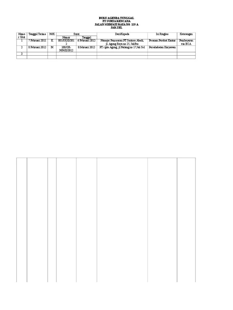Contoh format buku agenda tunggal berpasangan dan kembar hallo sahabat.